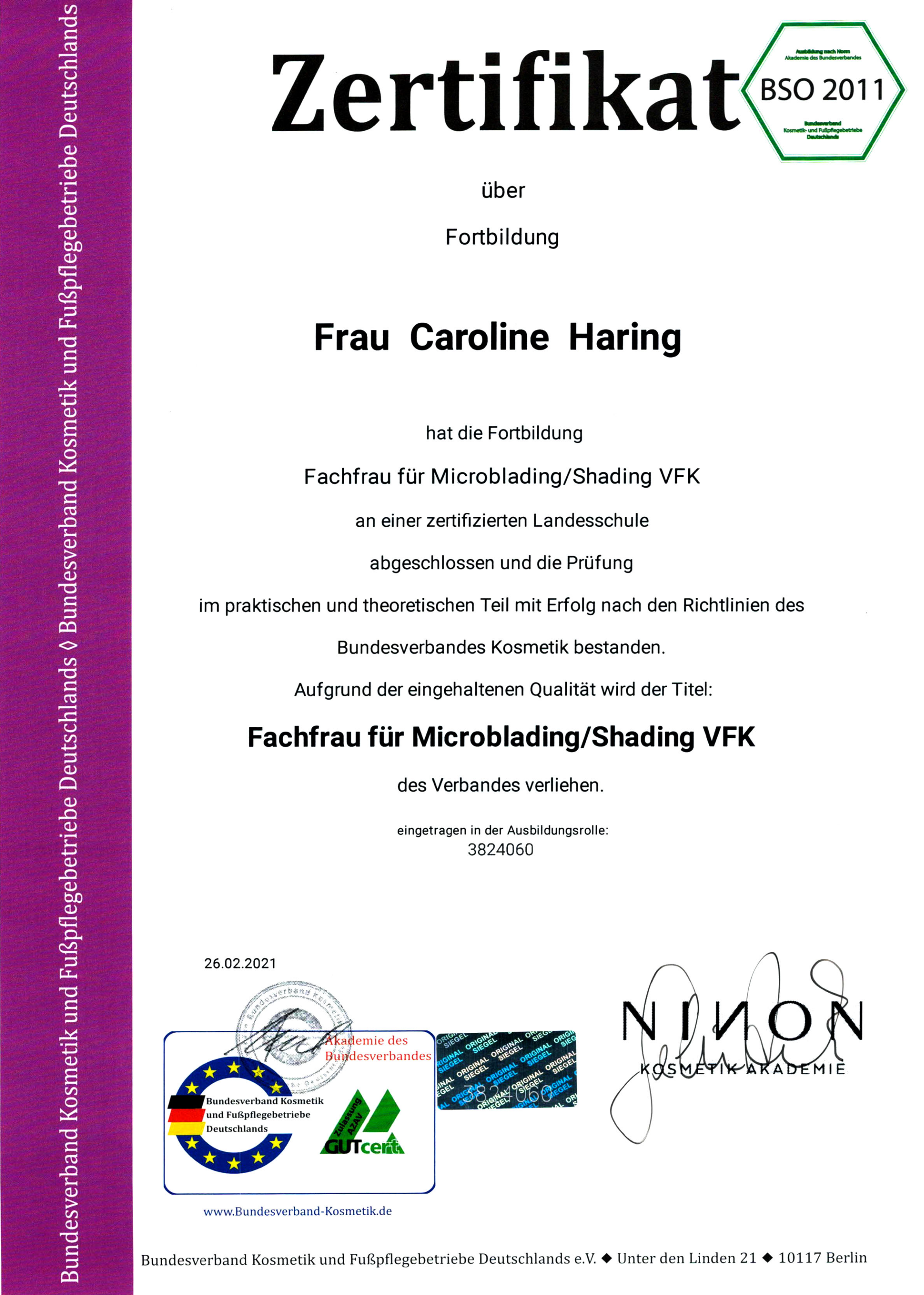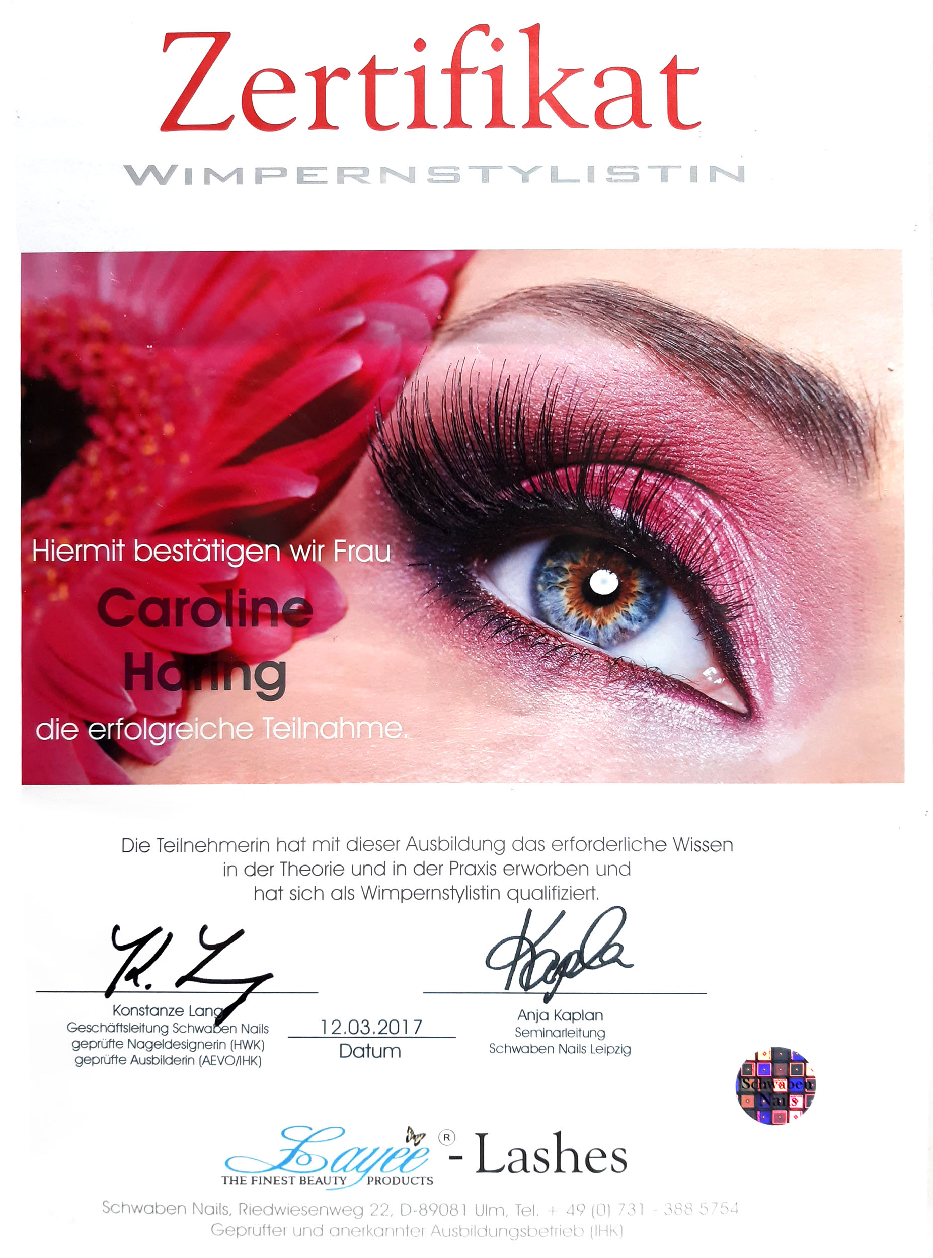 Seit 2014 arbeite ich als staatlich anerkannte Kosmetikerin.