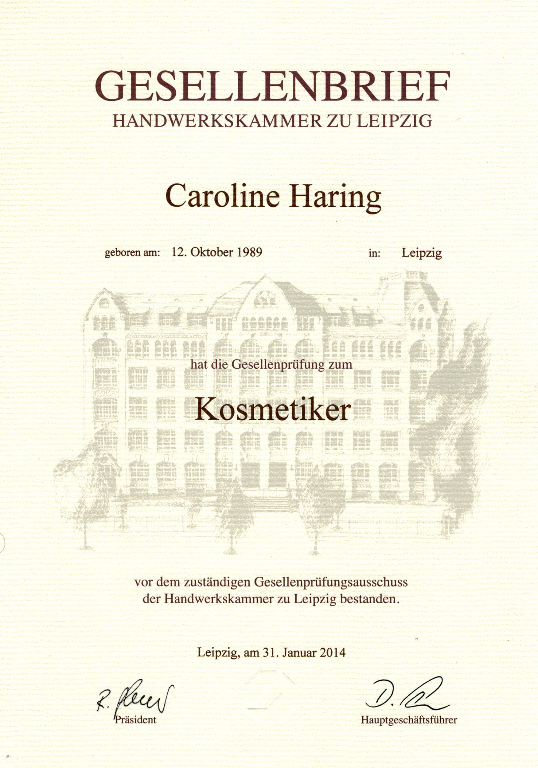 Guten Tag, mein Name ist Caroline Haring und ich bin 1989 in Leipzig geboren.